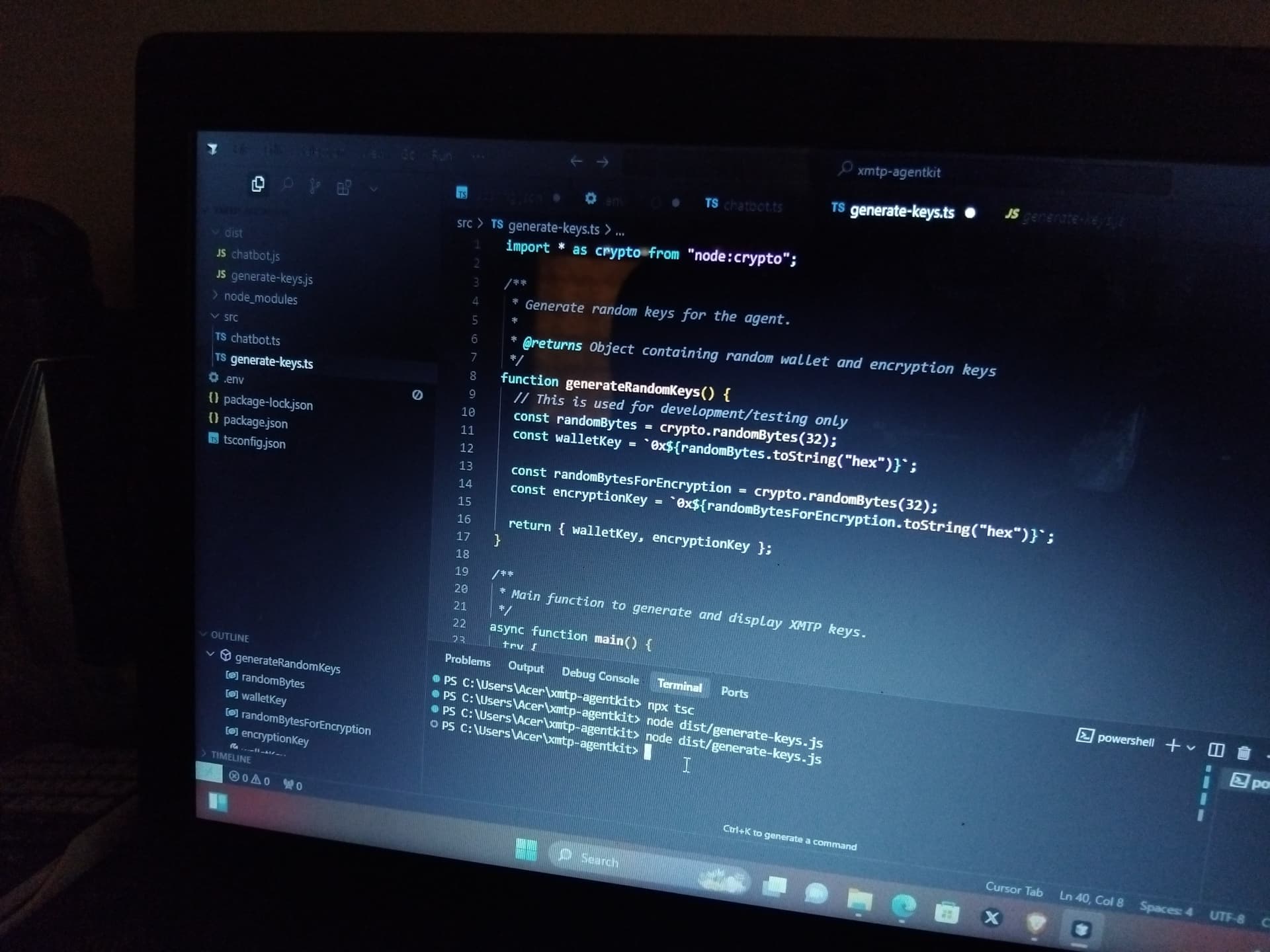 Any time i try to run node command to generate random xmtp keys , the command is thrown back to me on the terminal