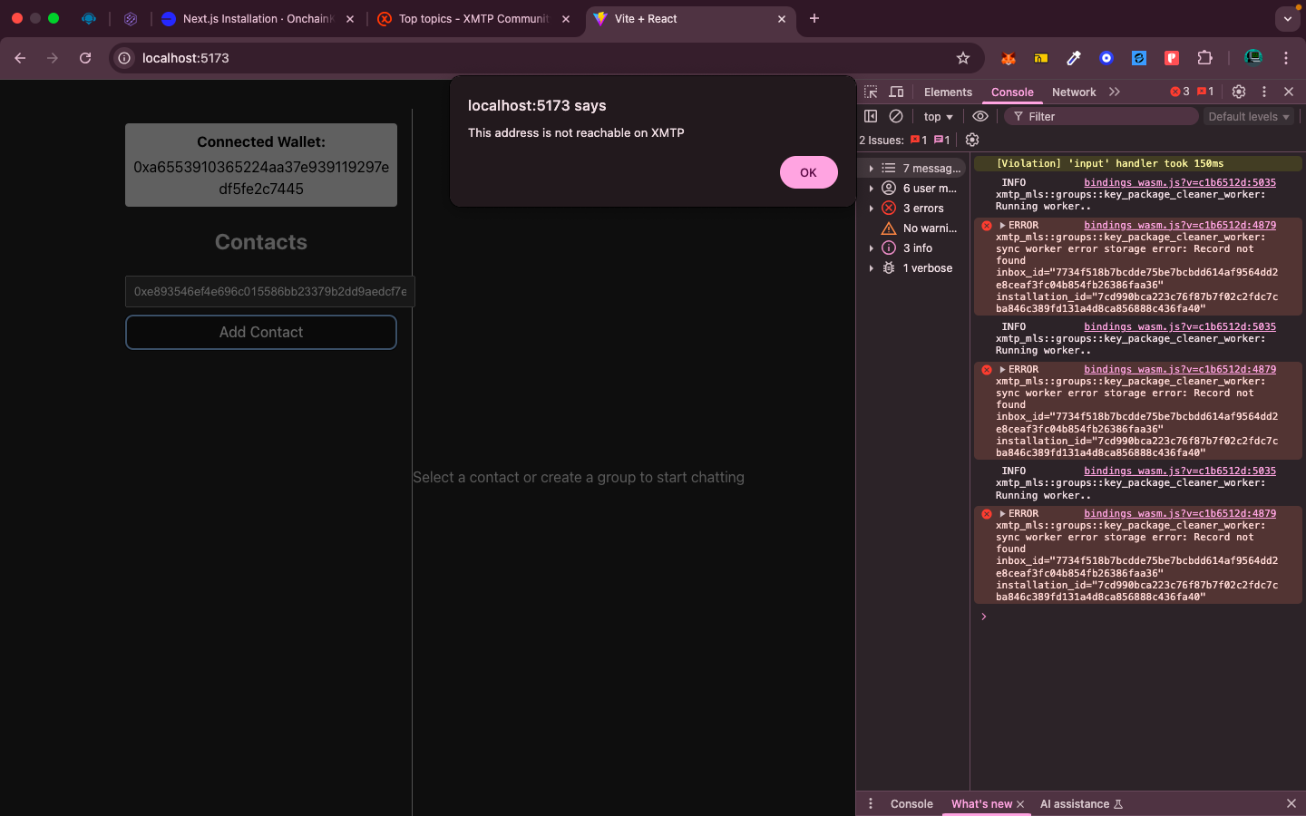 This address is not reachable on XMTP